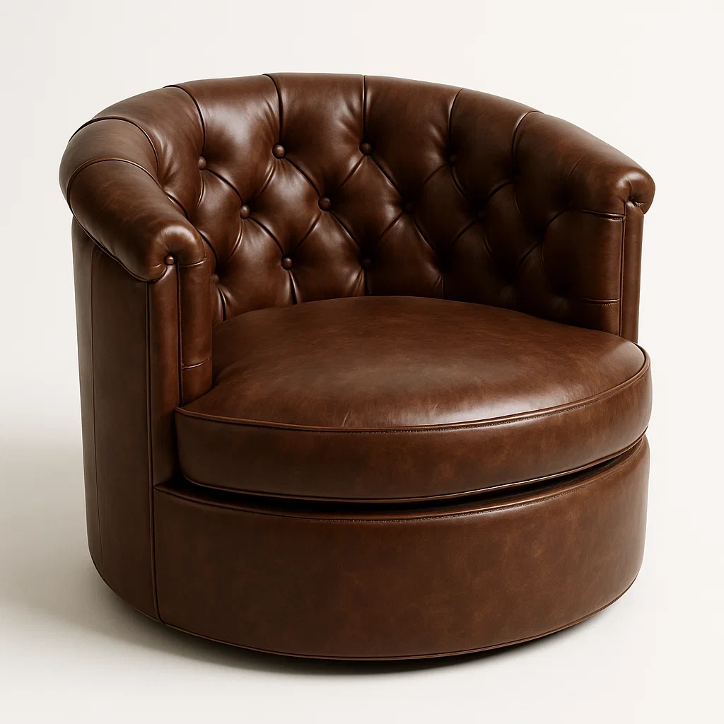 Poltrona rotante in pelle sintetica marrone con schienale imbottito