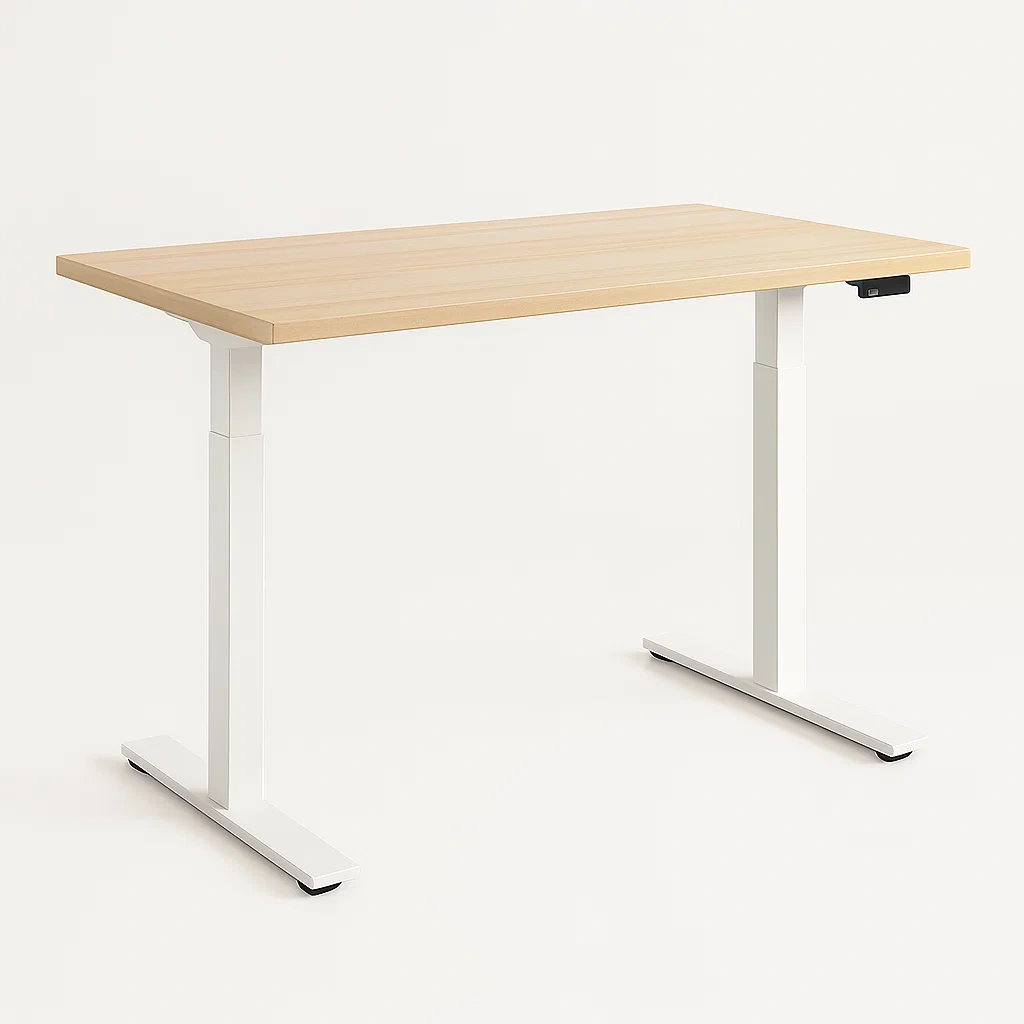 Scrivania da ufficio regolabile in altezza elettrica in MDF e acciaio bianco